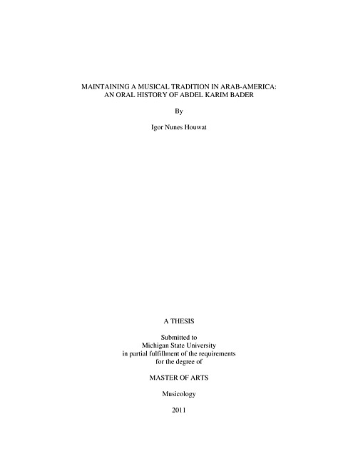 Maintaining a musical tradition in Arab-America : an oral history of Abdel Karim Bader