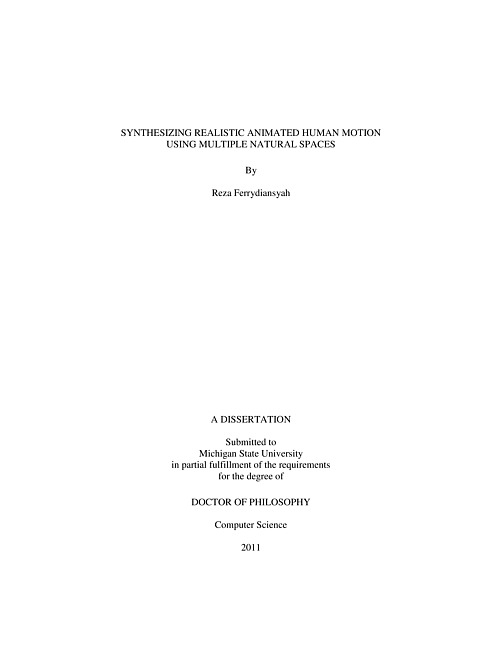 When animating virtual human, it is important that the movements created are realistic as well as meet various constraint. One way to create motion, given a starting pose, is to first find an ending pose that meets the various constraints. This is followed by calculating the motion needed from the starting space to the ending space. Traditional inverse kinematics method are able to find poses that meets certain constraints, however these poses are not always natural. Linear interpolation between starting pose and ending pose can be used to create motion. Once again however, the interpolation method does not always create motion that is natural. This thesis proposes the creation of natural space. The natural space is a hyper-dimensional space in which every point in this space describes a natural pose. Motion can be created by traversing over the points in this space. The natural space is created by reducing the dimensionality of motion capture data using Principal Component Analysis (PCA). Points in the reduced space retain the characteristic of the original data. Multiple natural spaces are created on different segment of the human skeleton.This thesis describes a method to generate new constrained natural poses that is natural. The poses synthesized are more natural than traditional inverse kinematics, and single space PCA. Motion is created through a space consisting of pose configurations and angular speed. A method to generate realistic looking motion based on this space is given in this thesis.