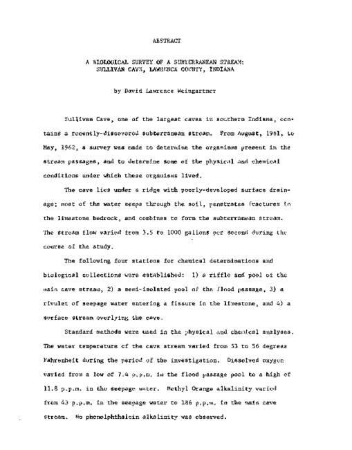 A biological survey of a subterranean stream : Sullivan Cave, Lawrence County, Indiana