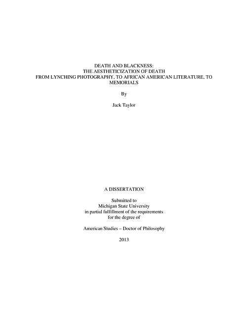 Death and blackness : the aestheticization of death from lynching photography, to African American literature, to memorials