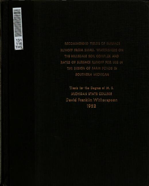 Recommended yields of surface runoff from small watersheds on the Hillsdale soil complex and rates of surface runoff for use in the design of farm ponds in southern Michigan