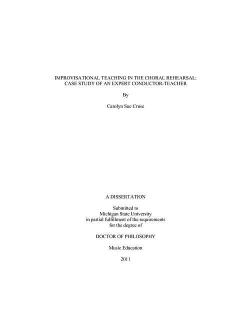 Improvisational teaching in the choral rehearsal : case study of an expert conductor-teacher