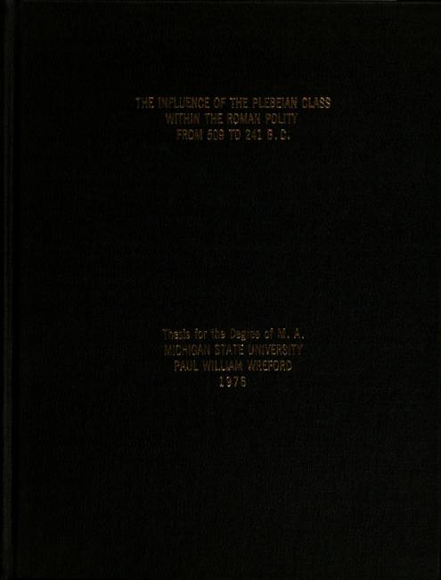 The influence of the plebeian class within the Roman polity from 509 to 241 B.C