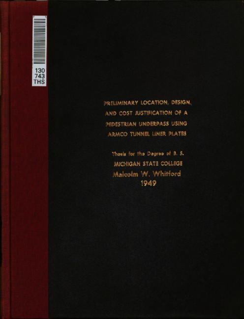 Preliminary location, design, and cost justification of a pedestrian underpass using Armco tunnel liner plates