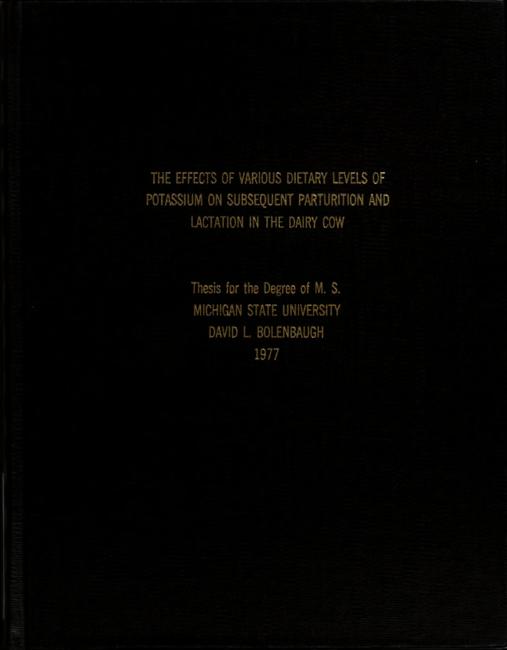 The effects of various dietary levels of potassium on subsequent parturition and lactation in the dairy cow