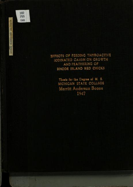 Effects of feeding thyroactive iodinated casein on growth and feathering of Rhode Island Red chicks