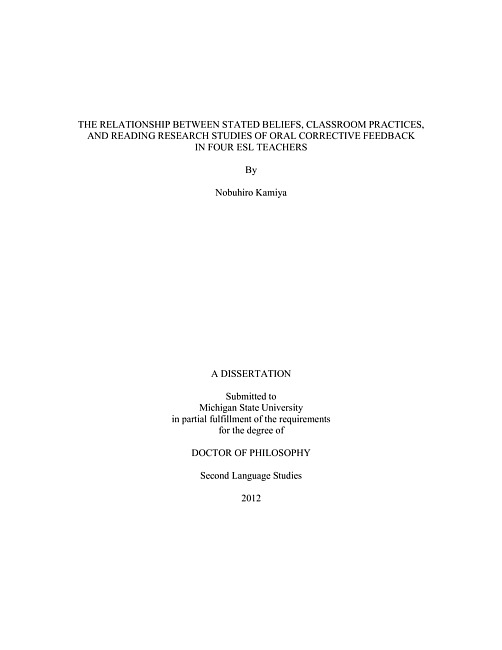 The relationship between stated beliefs, classroom practices, and reading research studies of oral corrective feedback in four ESL teachers