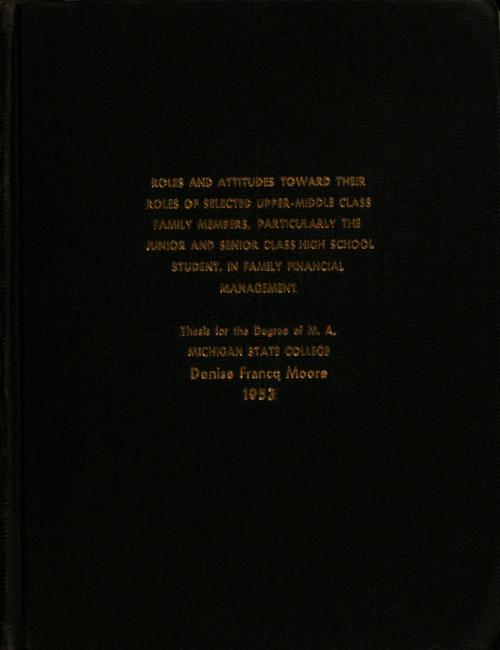 Roles and attitudes toward their roles of selected upper-middle class family members, particularly the junior and senior class high school student, in family financial management