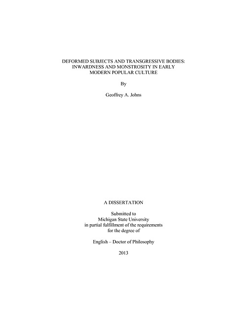 Deformed subjects and transgressive bodies : inwardness and monstrosity in early modern popular culture