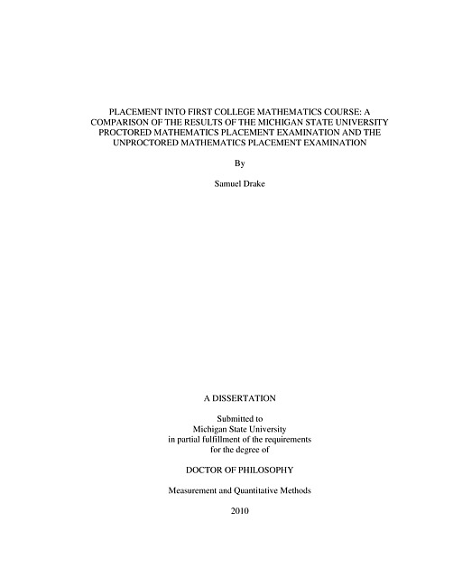 Placement into first college mathematics course : a comparison of the results of the Michigan State University proctored mathematics placement examination and the unproctored mathematics placement examination