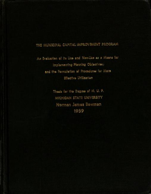 The municipal capital improvement program : an evaluation of its use and non-use as a means for implementing planning objectives ; and the formulation of procedures for more effective utilization