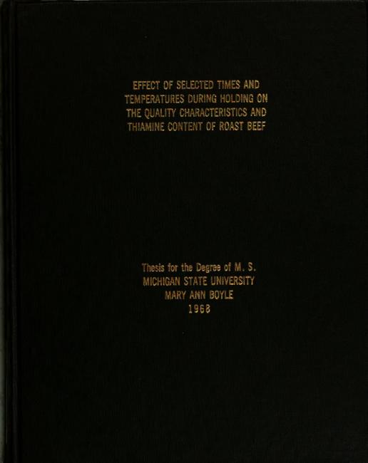 Effect of selected times and temperatures during holding on the quality characteristics and thiamine content of roast beef