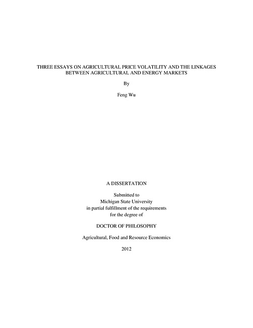 Three essays on agricultural price volatility and the linkages between agricultural and energy markets
