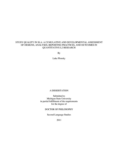 Study quality in SLA : a cumulative and developmental assessment of designs, analyses, reporting practices, and outcomes in quantitative L2 research