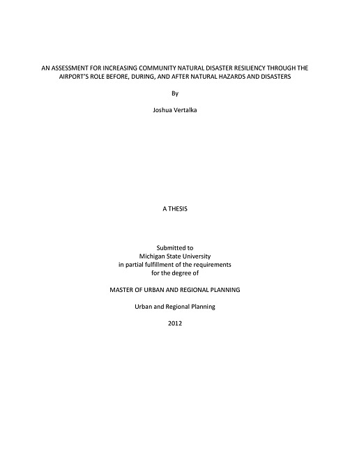 An assessment for increasing community natural disaster resiliency through the airport's role before, during, and after natural hazards and disasters
