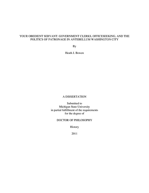 Your obedient servant : government clerks, officeseeking, and the politics of patronage in antebellum Washington City