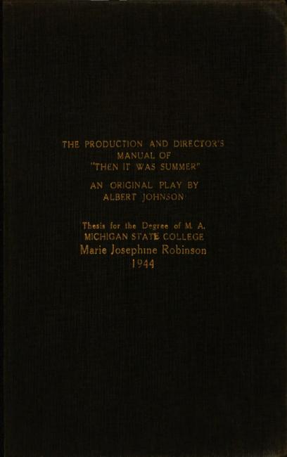 The production and director's manual of "Then it was summer", an original play by Albert Johnson