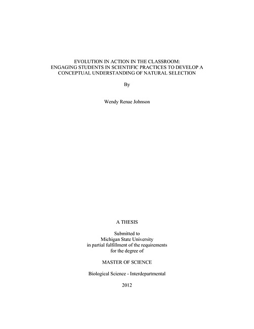 Evolution in action in the classroom : engaging students in scientific practices to develop a conceptual understanding of natural selection