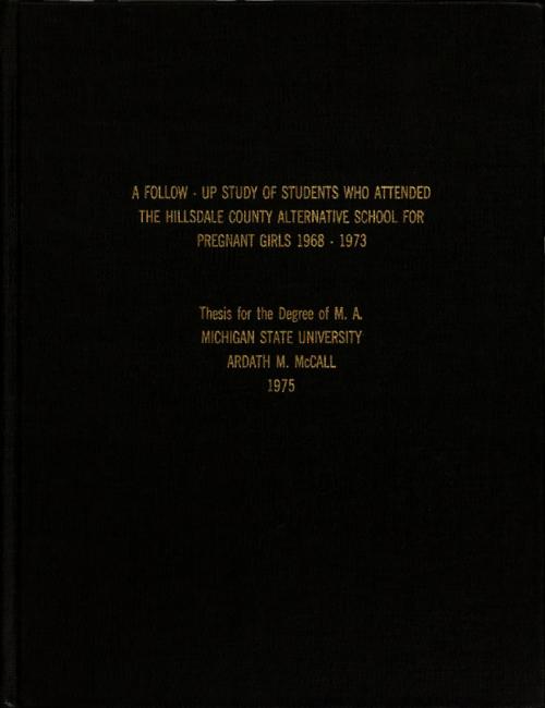 A follow-up study of students who attended the Hillsdale County alternative school for pregnant girls 1968-1973