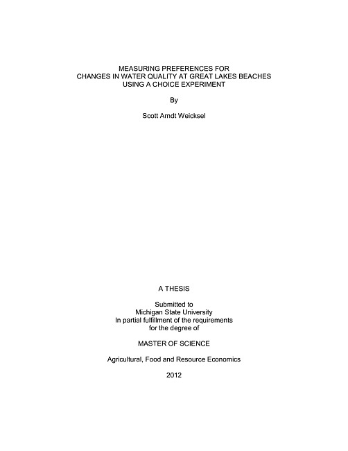 In two essays, this thesis reports the findings of a choice experiment (CE) conducted as part of a state-wide web survey of Great Lakes beach goers in Michigan. Despite the popularity of visiting Great Lakes beaches, little is known about visitors' preferences for environmental attributes at beaches. Existing literature focuses on marine beach valuation and the valuation of Great Lakes ecosystems services other than beaches. In the first essay, to address this gap, we gather preferences for environmental quality attributes at Great Lakes beaches. We find respondents prefer beaches closer to home, beaches with less algae in the shore and in the water, and beaches tested for bacteria. In a second essay, we examine the effect of labeling (i.e. assigning names to) the alternatives within a CE. Although there is a growing literature focused on the effects of CE design elements at the discretion of the researcher, little attention has been given to the effects of different labeling schemes (i.e. whether alternatives within the choice sets are labeled with a name or are left as generic alternatives). We employ a split-sample CE where respondents see either labeled, same-labeled (i.e. labels present but held constant), or unlabeled alternatives (with Great Lake names used as labels). Although we find some differences in parameters and marginal rates of substitution from the three labeling schemes, results are highly similar in rank and magnitude, suggesting a large degree of preference consistency and a high degree of transferability of the values for use in benefit transfer.