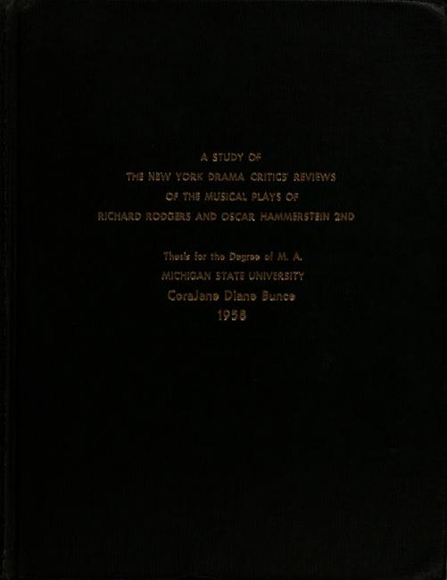 A study of the New York drama critics' reviews of the musical plays of Richard Rodgers and Oscar Hammerstein 2nd