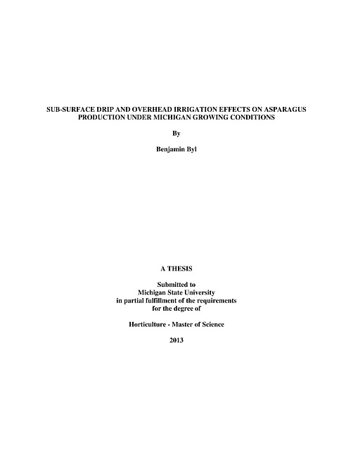 Sub-surface drip and overhead irrigation effects on asparagus production under Michigan growing conditions