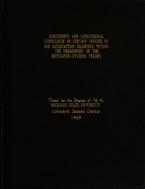 Concurrent and longitudinal correlates of certain indices of job satisfaction examined within the framework of the motivator-hygiene theory