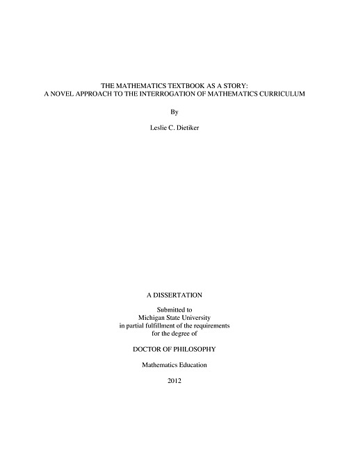 The mathematics textbook as a story : a novel approach to the interrogation of mathematics curriculum
