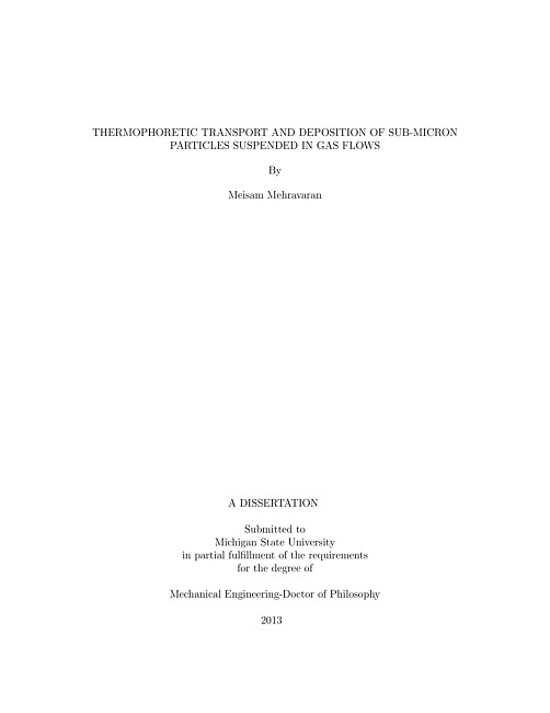 Thermophoretic transport of small particles in gas flows has many scientific and engineering applications, but has not been studied widely and is not well understood. Thermophoretic forces arise in the presence of temperature differences, which drive particles from hotter to colder regions of flows and may lead to deposition on surfaces, which may degrade heat transfer. Previous studies have shown that, in flows with sub-micron particles, and temperature gradients of the order of 10 K/cm, thermophoresis can be a dominant particle transport mechanism. In the research described in this proposal, the governing equations for mass, momentum, energy and species have been formulated and approximate boundary conditions for particulate transport have been proposed. A new series solution has been obtained for the particle concentration field in steady laminar tube flow, the results of which are consistent with particle deposition experiments. The effects of the tube entrance zone and of gas compressibility have been studied using computational fluid dynamics, and also compare well with experimental observations. In the case of steady turbulent duct flows, approximations based on existing direct numerical simulation results lead to a simple 1D model for the deposition efficiency of sub-micron particles that compares well with results of several experimental studies.There are also many engineering applications in which thermophoretic transport of particles takes place in unsteady pulsating flows, though there have been no previous studies of these problems. In the second part of this thesis, the effect of oscillating flows on thermophoretically driven mass transfer is investigated. It is found that unsteadiness has little or no effect on thermophoretic transport when the direction of flow oscillation is normal to the direction of heat transfer. However,when the directions of flow oscillation and heat transfer are aligned, flow oscillation can lead to significant enhancements in both heat transfer and thermophoretic mass transfer. In the particular problem of oscillating slug flow with an axial temperature gradient, it is found that the mass transfer is enhanced by up to 3 orders of magnitude over its steady rate. Variation of the frequency of oscillation reveals a tuning effect whereby a particular oscillation frequency maximizes the effective thermophoretic diffusivity. In the case of a considerable convective velocity in the direction normal to heat transfer-such as a porous channel flow with a pulsating vertical component of velocity, it is seen that thermal disturbances travel quickly in the longitudinal direction. Thus, in order to attain a tuning effect, a very high pulsating frequency would have to be imposed in the vertical direction, which would require high velocities that would surpass laminar thresholds and is impractical in most circumstances. In many industrial applications, the effect of unsteadiness on heat transfer and thermophoretic mass transfer is negligible. However, significant effects of mass-transfer enhancement could theoretically be observed in a few specialized devices such as conductive heat exchangers, if the heat transfer and flow oscillation periods coincide. This enhancement is a kind of thermal resonance which can theoretically occur when heat transfer takes place slowly, but it is a specialized effect and depends on the characteristics of the heat/mass transfer device and the frequencies of flow and thermal oscillation.