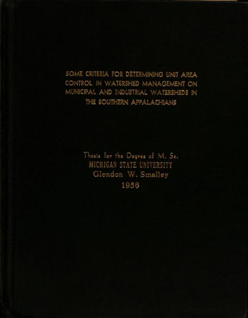 Some criteria for determining unit area control in watershed management on municipal and industrial watersheds in the Southern Appalachians