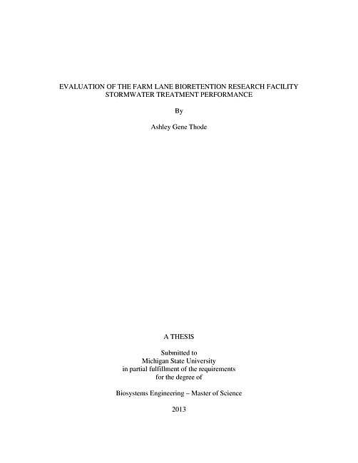 Evaluation of the Farm Lane bioretention research facility stormwater treatment performance