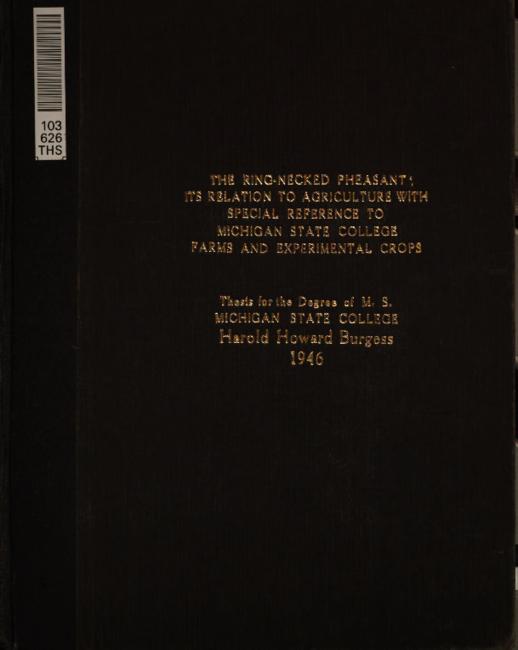 The ring-necked pheasant ; its relation to agriculture with special reference to Michigan State College farms and experimental crops