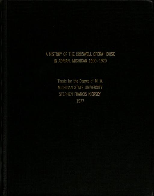 A history of the Croswell Opera House in Adrian, Michigan, 1900-1920