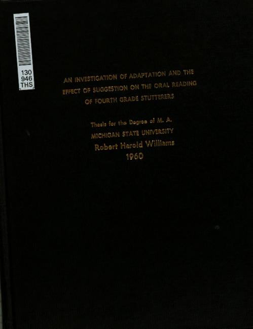An investigation of adaptation and the effect of suggestion on the oral reading of fourth grade stutterers