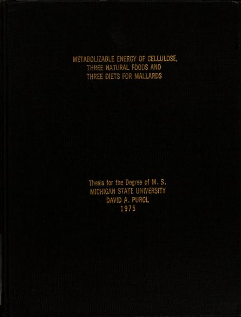 Metabolizable energy of cellulose, three natural foods and three diets for mallards