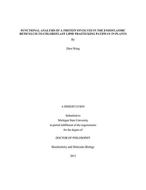 Functional analysis of a protein involved in the endoplasmic reticulum-to-chloroplast lipid trafficking pathway in plants