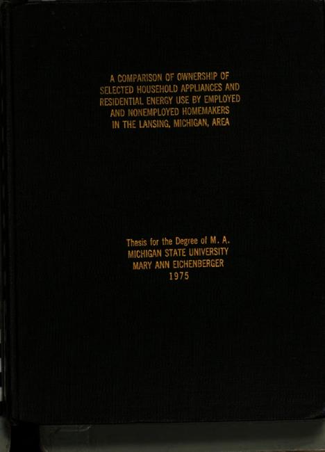 A comparison of ownership of selected household appliances and residential energy use by employed and nonemployed homemakers in the Lansing, Michigan, area