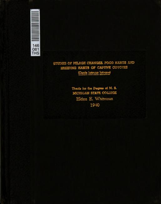 Studies of pelage changes, food habits & breeding habits of captive coyotes (Canis latrans latrans)