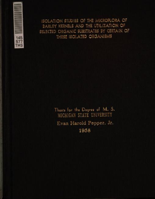 Isolation studies of the microflora of barley kernels and the utilization of selected organic substrates by certain of these isolated organisms