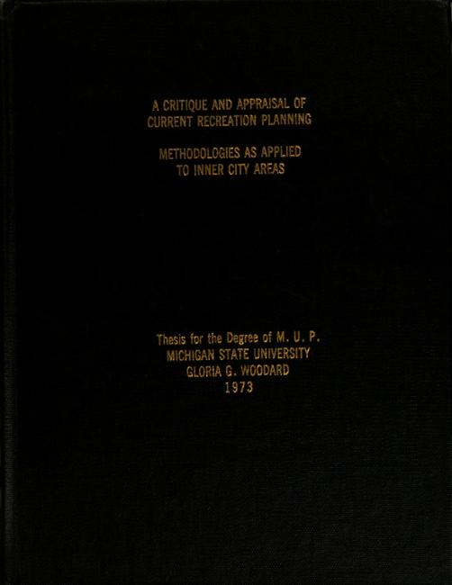A critique and appraisal of current recreation planning : methodologies as applied to inner city areas
