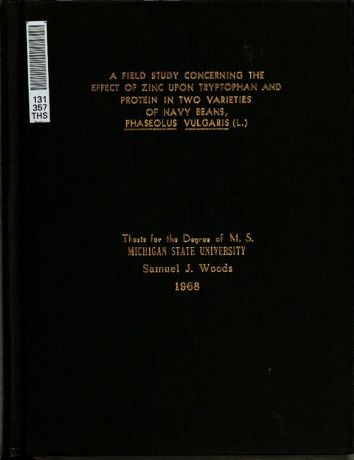 A field study concerning the effect of zinc upon tryptophan and protein in two varieties of navy beans, Phaseolus vulgaris (L.)