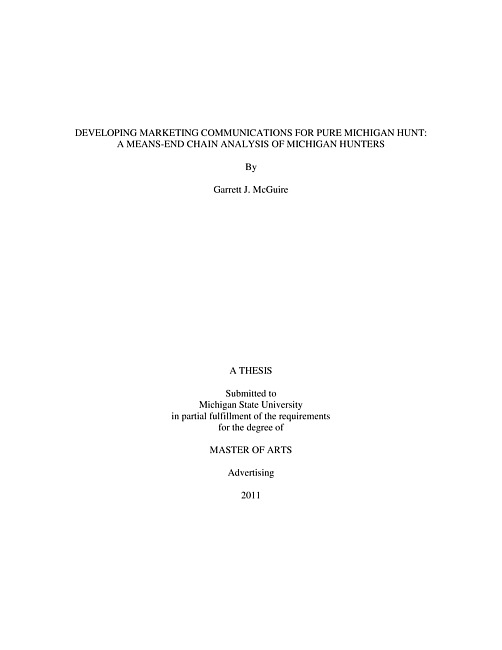 Developing marketing communications for Pure Michigan Hunt : a means-end chain analysis of Michigan hunters