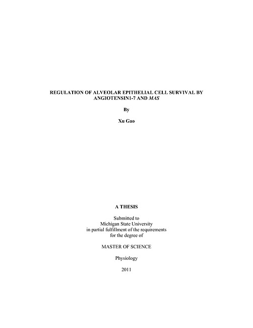 Regulation of alveolar epithelial cell survival by angiotensin1-7 and mas