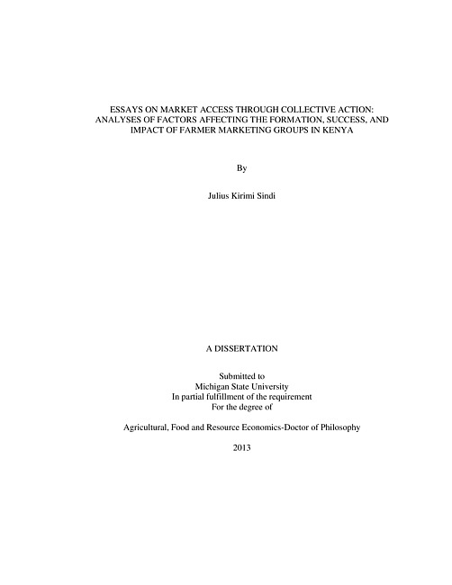 Essays on market access through collective action : analyses of factors affecting the formation, success, and impact of farmer marketing groups in Kenya