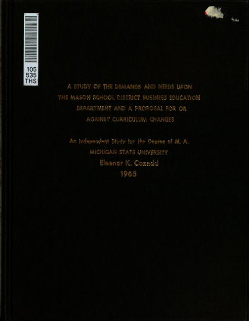 A study of the demands and needs upon the Mason School District Business Education Department and a proposal for or against curriculum changes