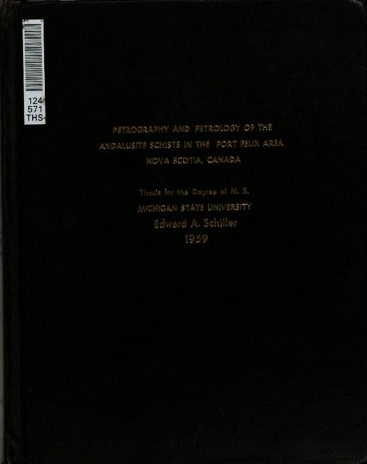 Petrography and petrology of the Andalusite schists in the Port Felix area, Nova Scotia, Canada