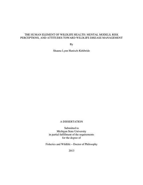 The human element of wildlife health : mental models, risk perceptions, and attitudes toward wildlife disease management
