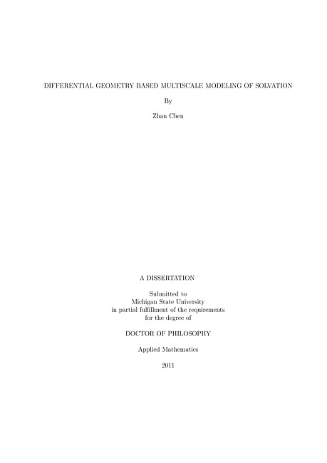 Solvation is an elementary process in nature and is of paramount importance to many sophisticated chemical, biological and biomolecular processes. The understanding of solvation is anessential prerequisite for the quantitative description and analysis of biomolecular systems.Implicit solvent models, particularly those based on the Poisson-Boltzmann (PB) equation for electrostatic analysis, are established approaches for solvation analysis. However, ad hoc solvent-solute interfaces are commonly used in the implicit solvent theory and have some severe limitations.We have introduced differential geometry based solvation models which allow the solvent-solute interface to be determined by the variation of a total free energy functional. Our models extend the scaled particle theory (SPT) of nonpolar solvation models with a solvent-solute interaction potential. The nonpolar solvation model is completed with a PB theory based polar solvation model. In our Eulerian formation, the differential geometry theory of hypersurface is utilized to define and construct smooth interfaces with good stability and differentiability, for use in characterizing the solvent-solute boundaries and in generating continuous dielectric functions across the computational domain. Some techniques from the geometric measure theory are employed to rigorously convert a Lagrangian formulation of the surface energy into an Eulerian formulation, so as to bring all energy terms on an equal footing. In our Lagrangian formulation, the differential geometry theory of surfaces is used toprovide a natural description of solvent-solute interfaces. By optimizing the total free energy functional, we derive a coupling of the generalized Poisson-Boltzmann equation (GPBE) andthe generalized geometric flow equation (GGFE or also called Laplace-Beltrami equation) for the electrostatic potential and the construction of realistic solvent-solute boundaries, respectively. The coupled partial differential equations (PDEs) are solved with iterativeprocedures to reach a steady state, which delivers the desired solvent-solute interface and electrostatic potential for many problems of interest. These quantities are utilized to evaluatethe solvation free energies, protein-protein binding affinities, etc.The above proposed approaches have been extensively validated.Extensive numerical experiments have been designed to validate the present theoretical models, to test the computationalmethods, and to optimize the numerical algorithms. Solvation analysis of both small compounds and proteins are carried out to further demonstrate the accuracy, stability, efficiency and robustness of the present new models and numerical approaches. Comparisonis given to both experimental and theoretical results in the literature.Moreover, to account for the charge rearrangement during the solvation process, we also propose a differential geometry based multiscale solvation model which makes use of electrondensities computed directly from a quantum mechanical approach. We construct a new total energy functional, which consists of not only polar and nonpolar solvation contributions, but also the electronic kinetic and potential energies. We show that the quantum formulation of our solvation model improves the prediction of our earlier models, and outperforms some explicit solvation analysis.