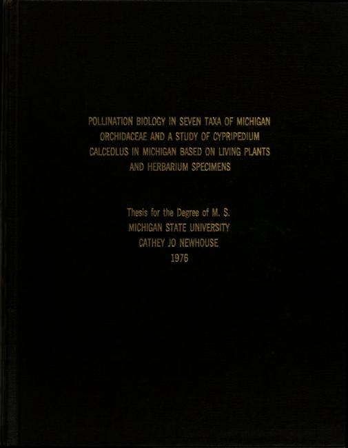 Pollination biology in seven taxa of Michigan Orchidaceae and a study of Cypripedium calceolus in Michigan based on living plants and herbarium specimens