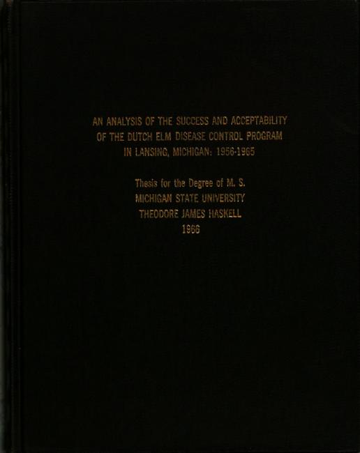 An analysis of the success and acceptability of the Dutch Elm Disease Control Program in Lansing, Michigan, 1956-1965